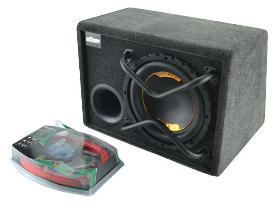 Caisson de basses actif de 10 pouces conçu pour apporter des basses profondes et puissantes — idéal pour un système audio voiture en espace réduit. Vendu avec un kit de câblage.